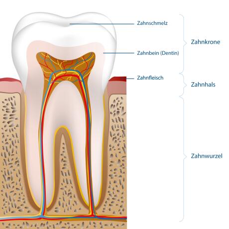 Die typischen, oft blitzartig einschießenden Zahnschmerzen treten dann auf, wenn äußere Reize mit dem Zahnbein, auch Dentin genannt, in Kontakt kommen. Normalerweise liegt das Dentin gut geschützt unter dem harten Zahnschmelz, der die äußerste Schicht des Zahnes bildet. Im Bereich des Zahnhalses wird das Dentin durch das Zahnfleisch zum Mundraum hin abgeschirmt.